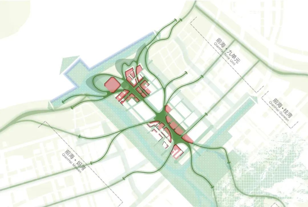 最大程度的将山海景观资源与文化设施相融合,打破传统井字格的城市肌理网络,用流动复合的城市公共空间,引导人对于多元生活的体验和感受,在前海湾畔打造一个兼顾效率与舒适的未来生机之城和文化艺术都心。